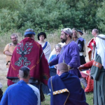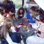 Tradition saying it was started over the correct texture of chocolate chip cookies (chewy or crunchy), this war has its earliest roots as the Shasta Punitive Raid in AS 11 (August ‘76) where “sides were chosen [&] An Tir emerged victorious, thus forcing the Kingdom to keep Shasta.” The following year on the now-traditional weekend, the 2nd Annual Shasta Counter-Invasion was held, calling mercenaries to “HELP SUPPORT–or oppose–THE MANIFEST DESTINY OF AN TIR.” Next year’s was called the Golden Rivers and Lion’s Gate War. Though Kingdom history records no war in ’79, it returned in ’80 and again in ‘83 as the Lionsgate-Westermark War before again laying fallow again for a year. It returned in its current form in 1985 as West-AnTir / AnTir-West War. After drifting from battlefield to battlefield for decades, it found a home in Gold Beach in 2007 and remains there to this day.